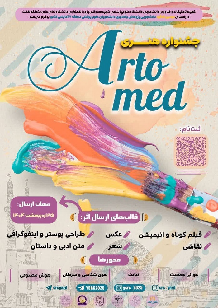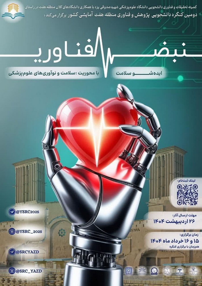 کمیته تحقیقات و فناوری دانشجویی دانشگاه علوم پزشکی شهید صدوقی یزد کنگره پژوهش و فناوری دانشجویان کلان منطقه ۷ کشور به همراه جشنواره هنری و رویداد ایده شو را برگزار می نماید.