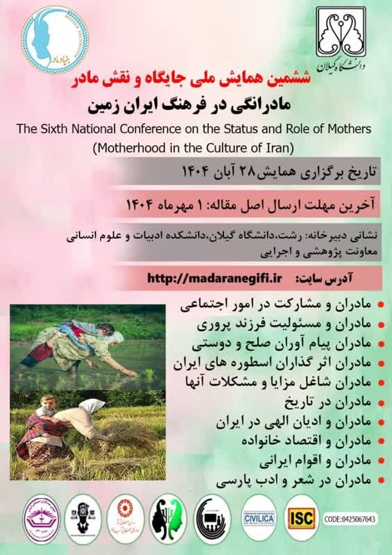 به آگاهی می رساند ششمین همایش ملی جایگاه و نقش مادر (مادرانگی در فرهنگ ایران زمین) به همت دانشگاه گیلان و با همکاری بنیاد بین المللی مادر ، در رشت برگزار می گردد.