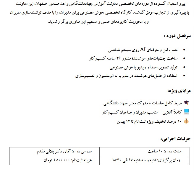 کارگاه تخصصی " هوش مصنوعی برای مدیران "